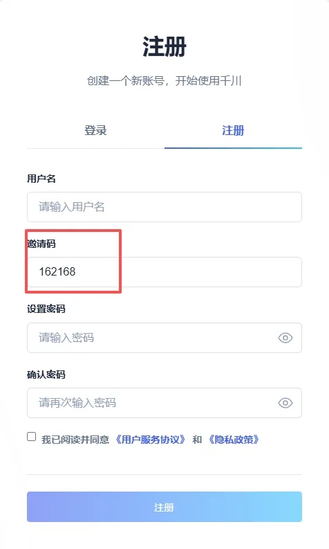 第一步:打开上面的注册链接,进入注册界面。按要求填写账号,密码,邀请码记得填上162168,这个是官方的优惠邀请码,不填邀请码的账户起充金额是50元,填了是5元。