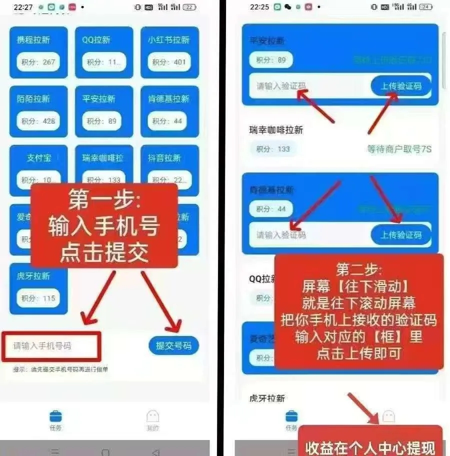 如果不会,请看下图,或者先自己用手机号尝试一下,把第一单收益拿到手再说!